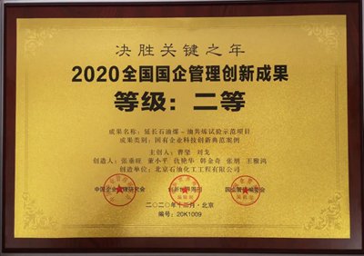 北油工程EPC項目獲科技創(chuàng)新成果二等獎