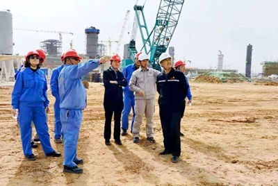 4月26日,北京石油化工工程有限公司黨委書記、董事長許緘濤到榆神乙醇項目現場調研指導工作,公司副總經理鄭薇、總經理助理田平漢、總經理助理楊礫及項目主要領導陪同調研。