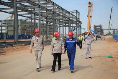 許緘濤檢查了項目現場,聽取了項目關于安全、質量、進度等方面工作情況匯報。他指出,榆神能化項目是延長石油集團及我公司的重點工程,建設情況受到廣泛關注。公司對項目建設情況高度重視,項目全員要提高認識,形成共識,按照施工計劃高標準完成任務;緊盯“10?30鍋爐具備點火條件”節點目標,強化時間觀念和效率意識,搶進度、抓質量、保安全,確保項目建設重大節點順利實現。同時,他對不畏酷暑、奮戰在一線的員工表示慰問,并叮囑大家要勞逸結合,合理安排作息時間,安全生產,平安度夏。