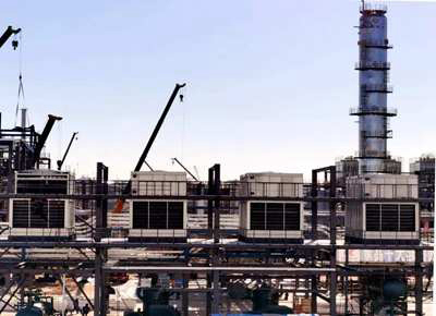榆神能化煤基乙醇項目冷凝器一次全部吊裝就位