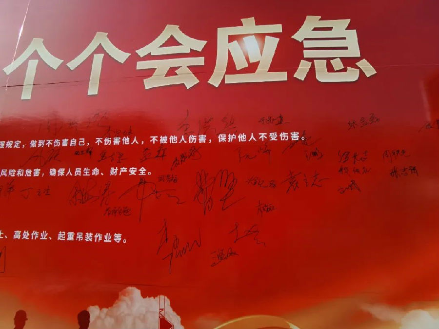 隨后,與會人員依次在“安全生產月”簽字墻上簽下自己的名字。通過“安全生產月”活動的開展,警醒員工對安全的感知,增強安全生產的責任感,時刻繃緊安全弦,堅守安全紅線,自覺規范操作,真正做到學安全、懂安全、能安全。