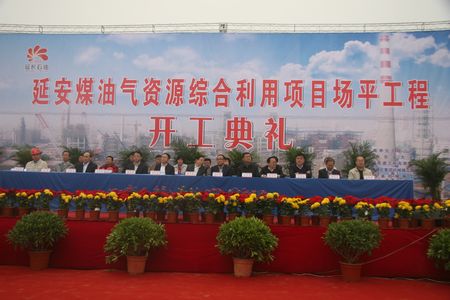 延安能化公司總經理王家信在儀式上致辭,集團公司副總經理馮和平做了重要講話,延安市委常委、常務副市長薛占海為工程宣布開工令。