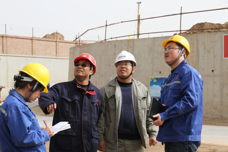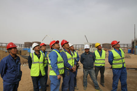 在煤-油共煉試驗示范項目工地,總包單位和業主安全管理人員進行安全檢查。
