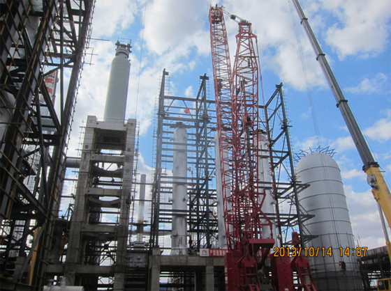 據悉,此懸浮床反應器高32米,重195噸,主吊采用400噸履帶式起重機,輔吊采用200噸汽車吊和130噸汽車吊聯合溜尾。此次吊裝在對吊裝總重及吊車性能等進行了周密核算,實現了項目大型吊裝資源利用的最優化,真正做到了成本最小化、利益最大化。
