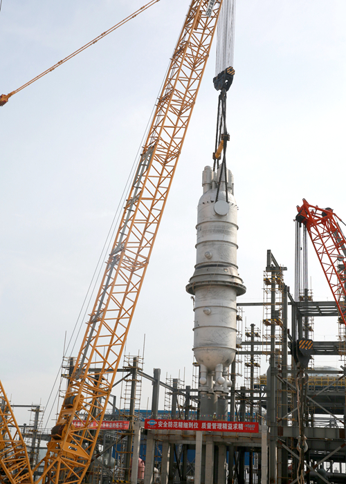 延能化項目甲醇裝置核心設(shè)備——合成塔順利吊裝